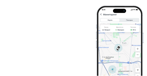 Позволяет отслеживать местоположение автомобиля на карте и сохранять историю поездок для анализа и контроля перемещений.